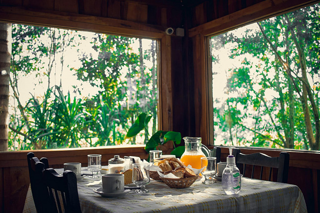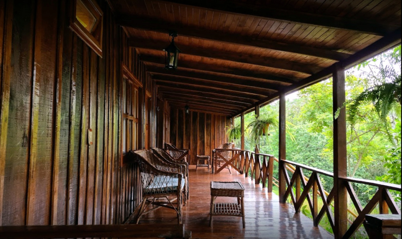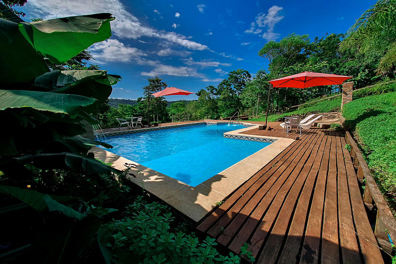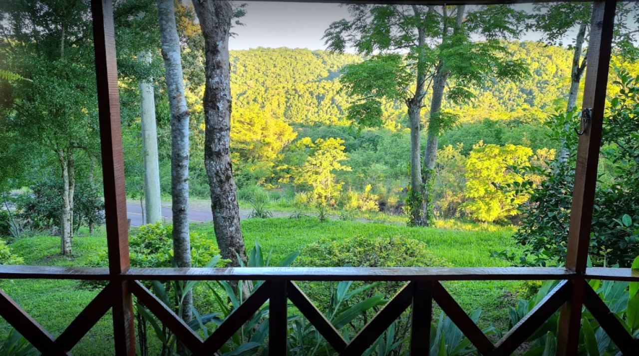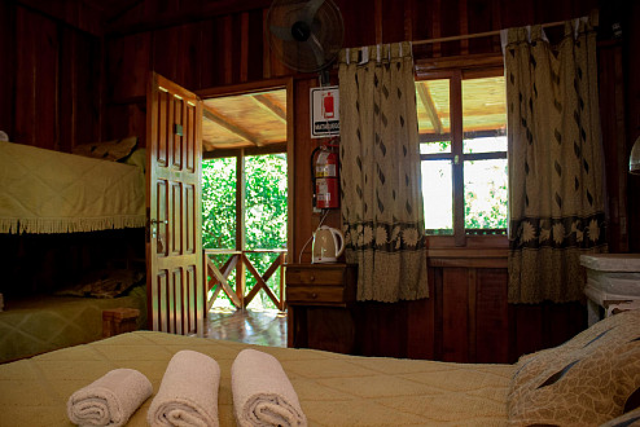 Las cabañas tienen una vista espléndida hacia el Parque Estadual do Turvo (Brasil) y al Río Uruguay.