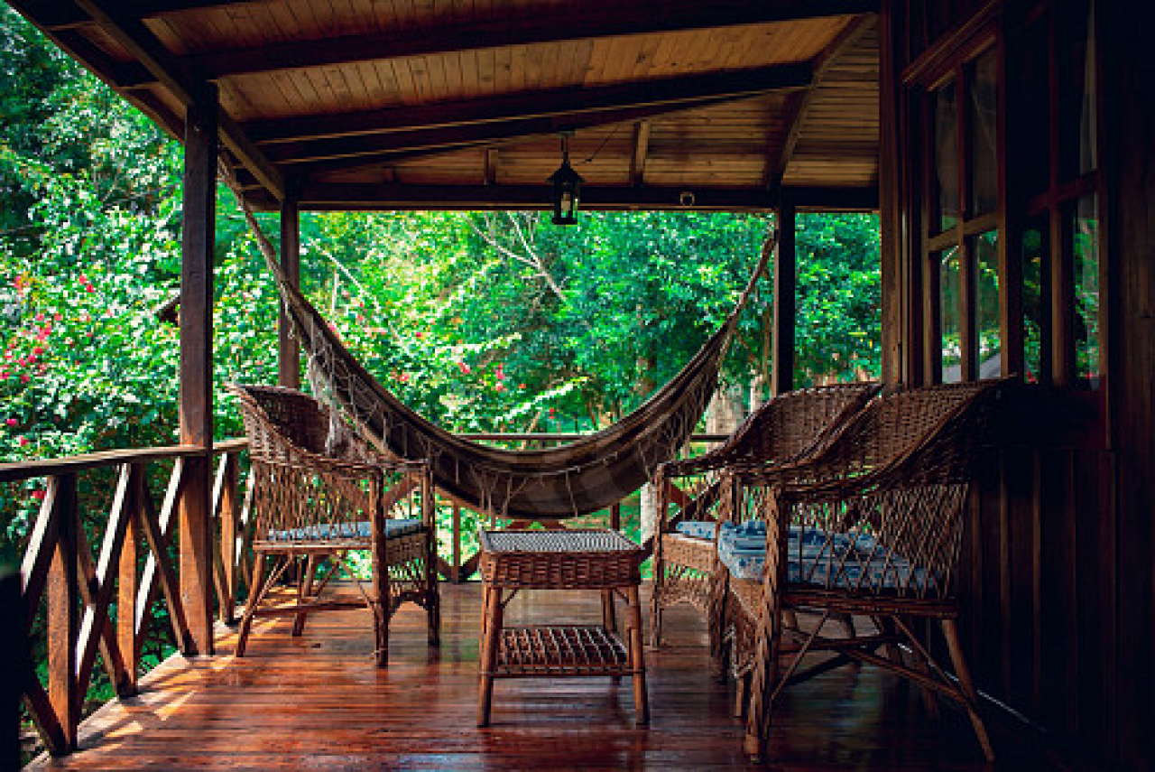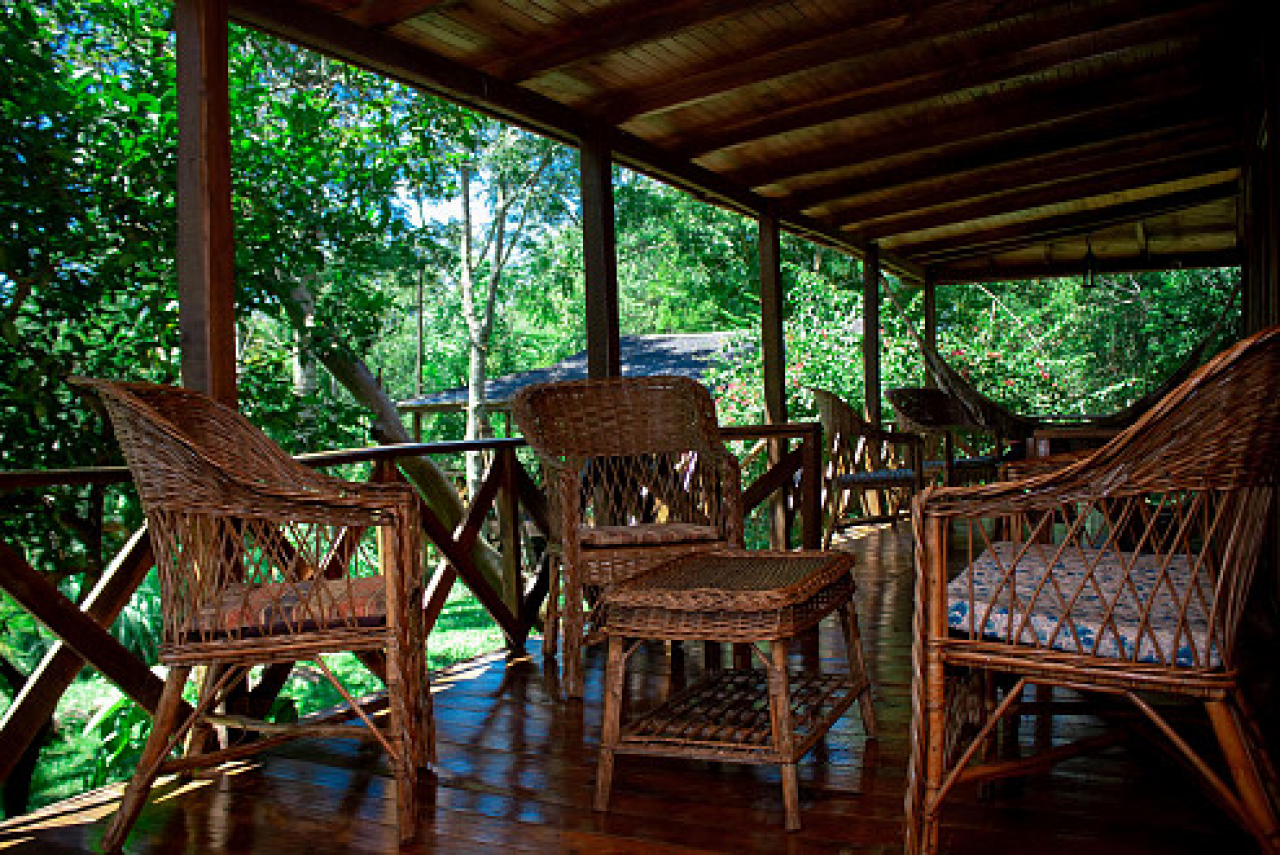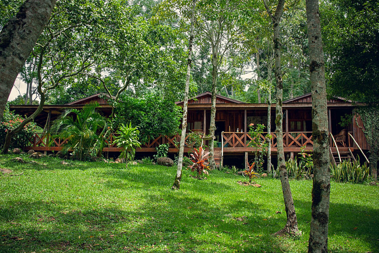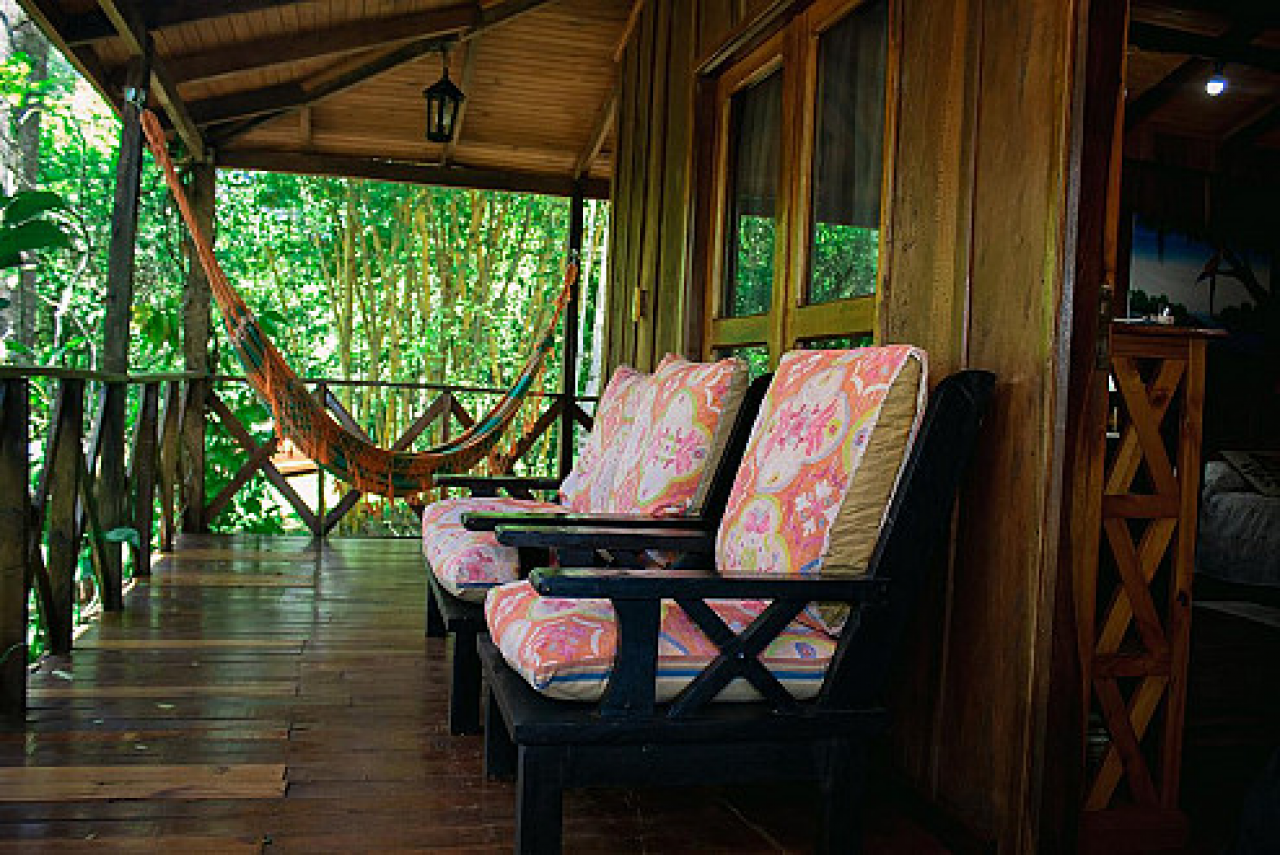 Las cabañas tienen una vista espléndida hacia el Parque Estadual do Turvo (Brasil) y al Río Uruguay.
