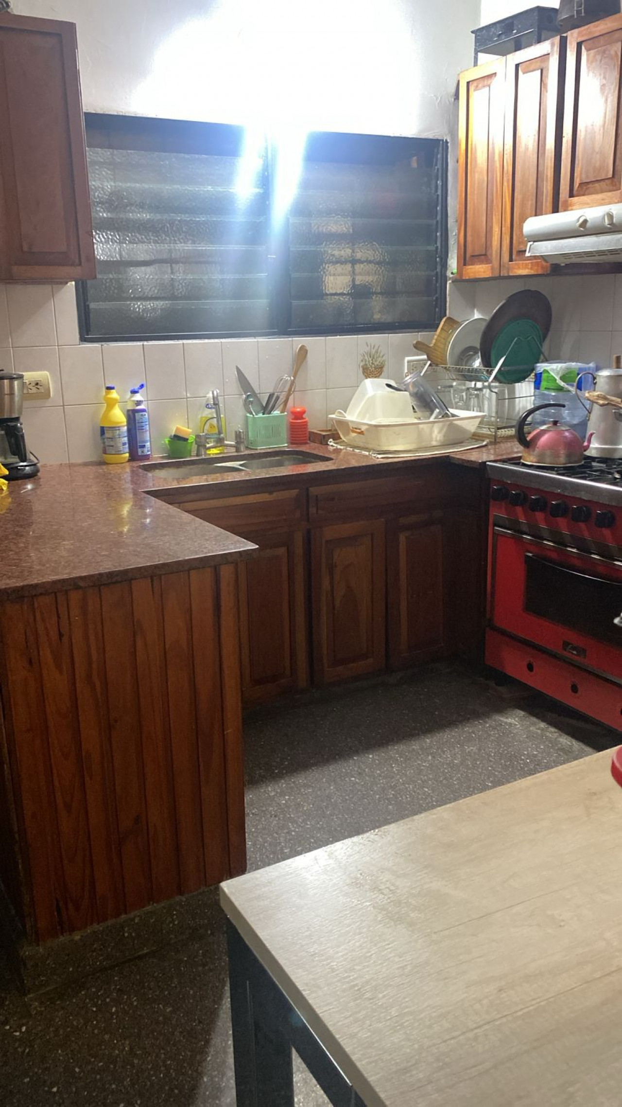Cocina amoblada con mesada y alacenas, conectada al lavadero interno
