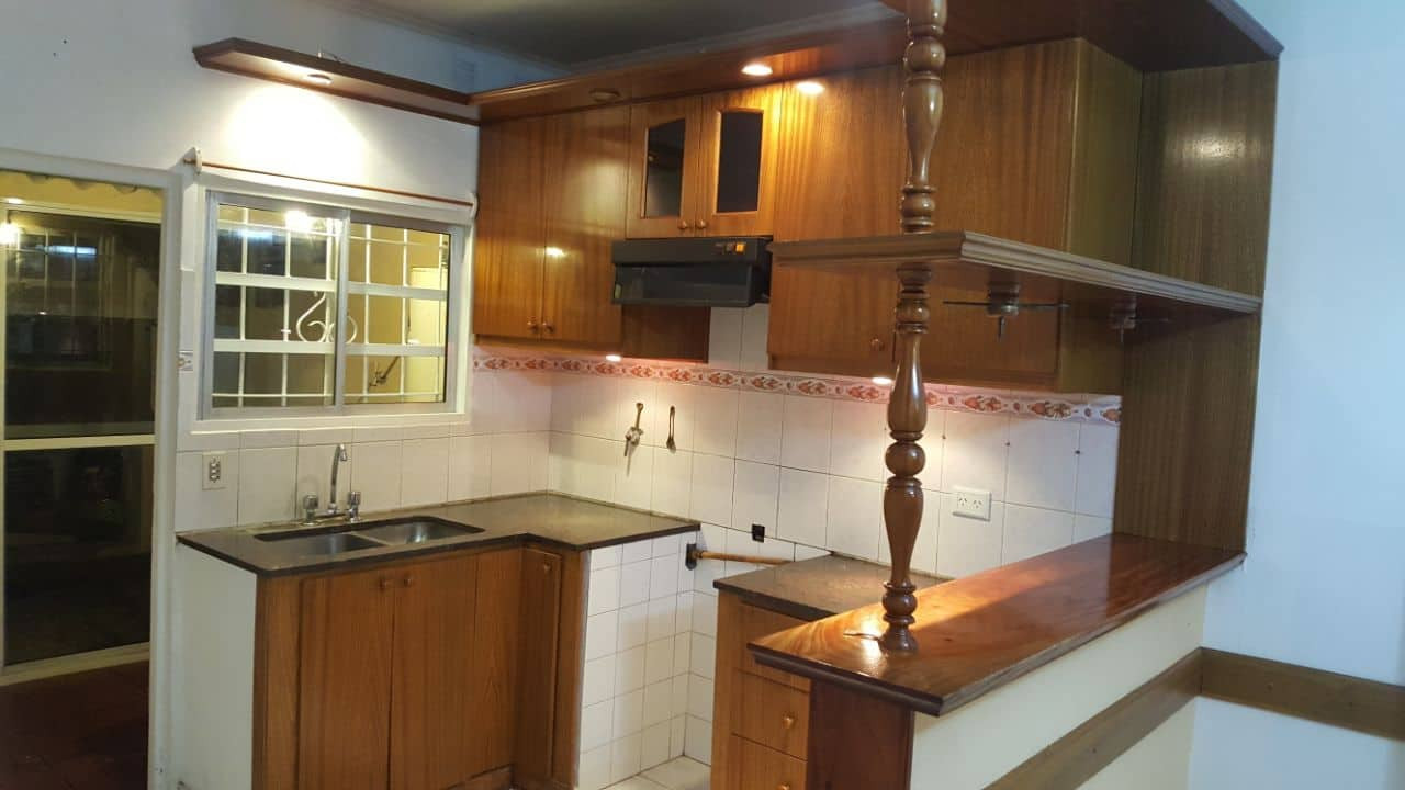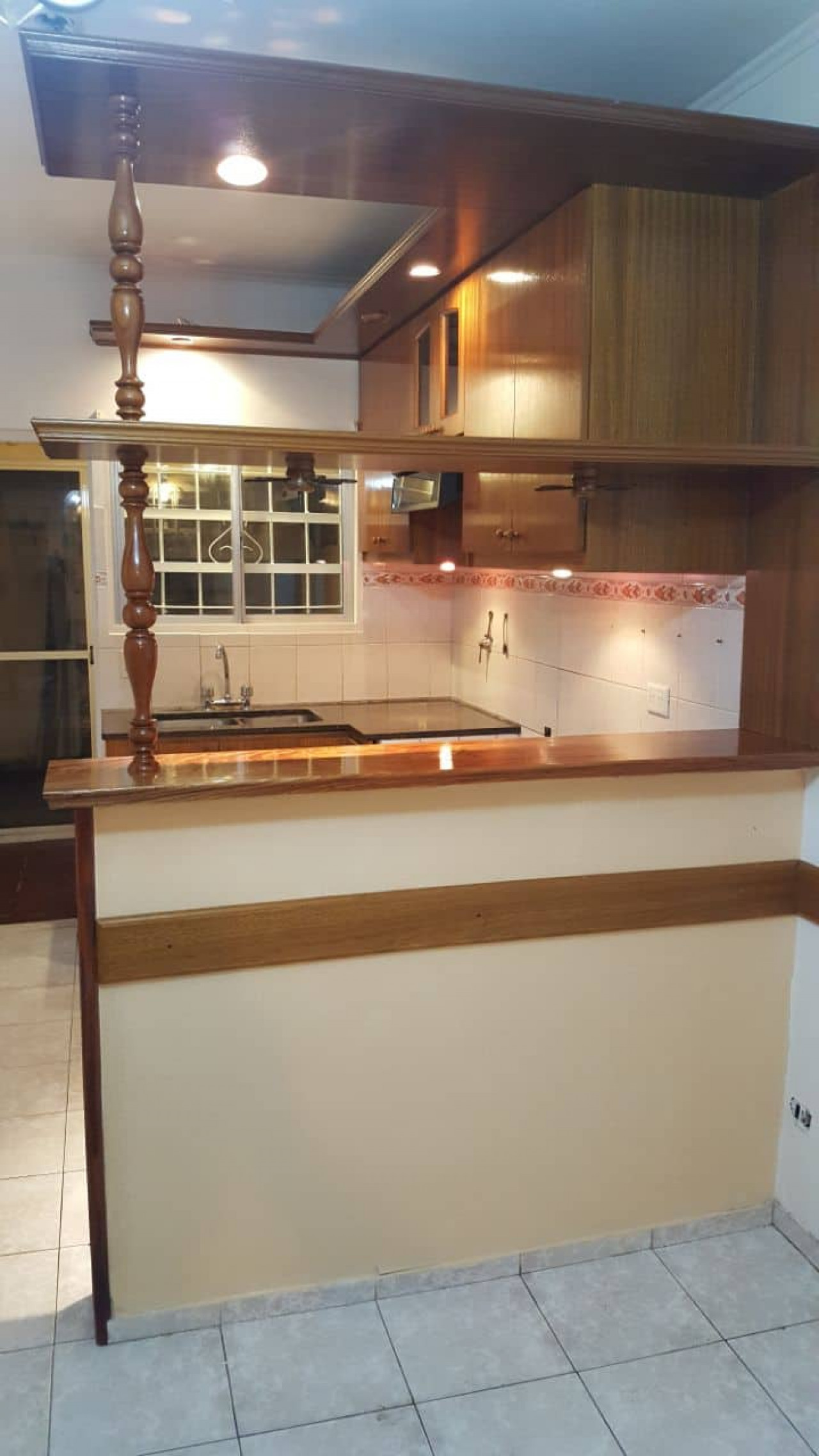 Muebles de alacena y bajo mesada en madera, con doble bacha de lavado