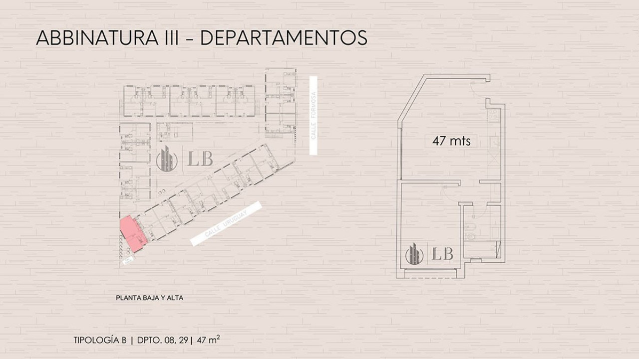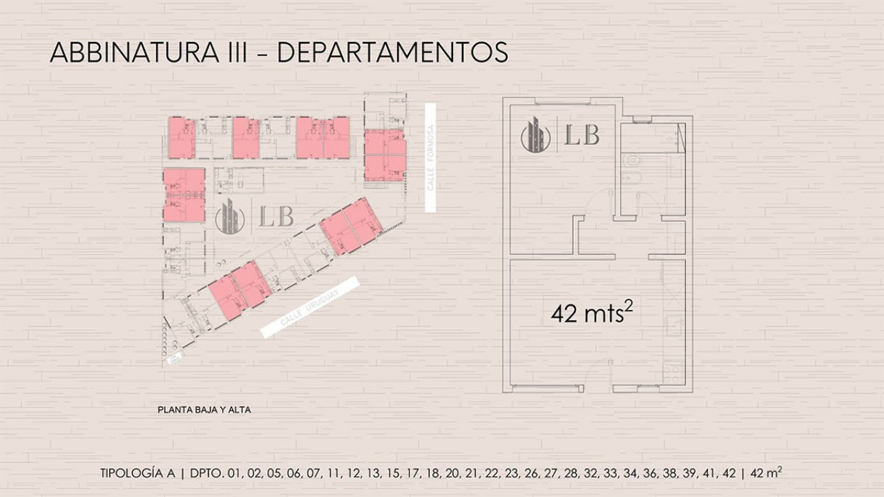 Actualmente quedan disponibles departamentos de 2 ambientes, con superficies de 42 m² y 47 m², distribuidos de forma funcional para un óptimo aprovechamiento de los espacios: