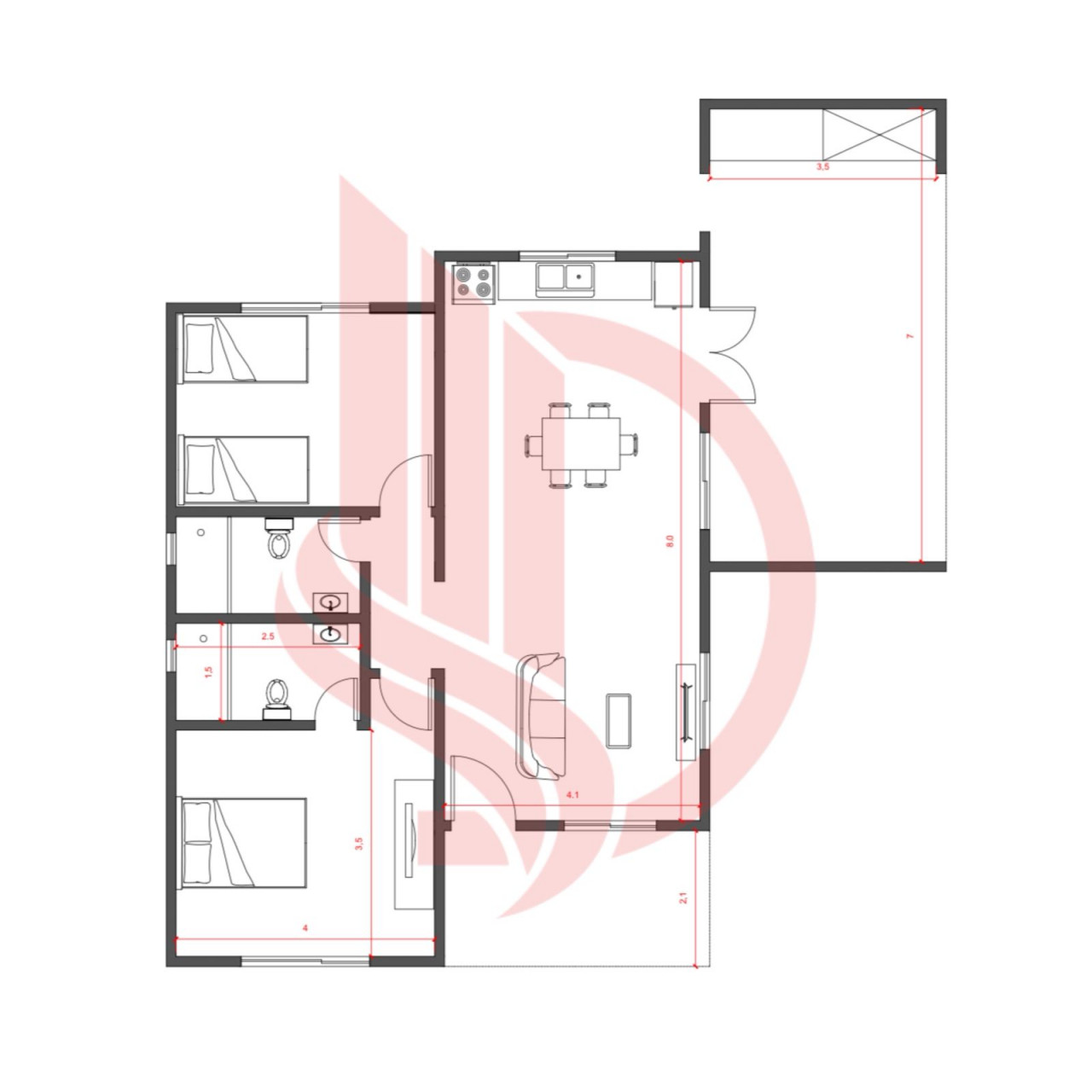 Construida sobre un lote de 800 m² (20 x 40 metros), esta casa de campo combina estilo rústico con detalles modernos:
