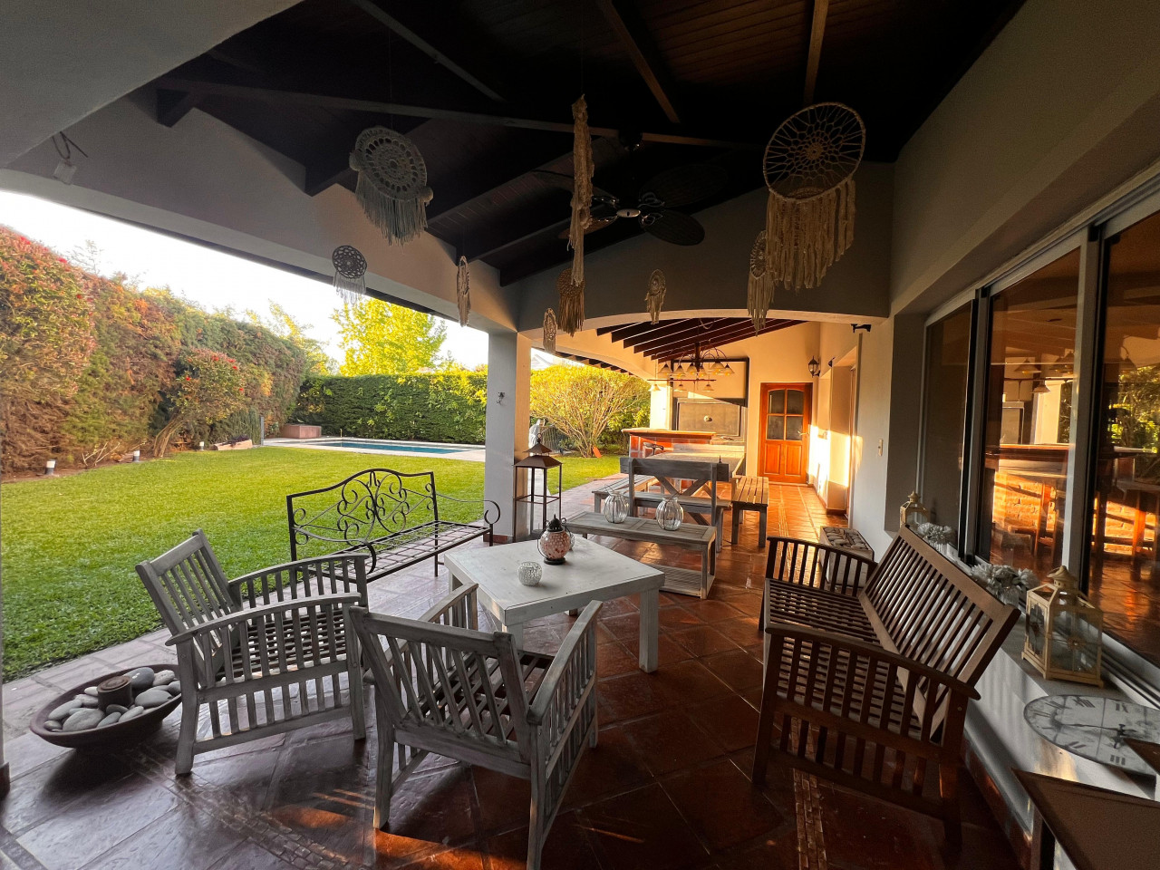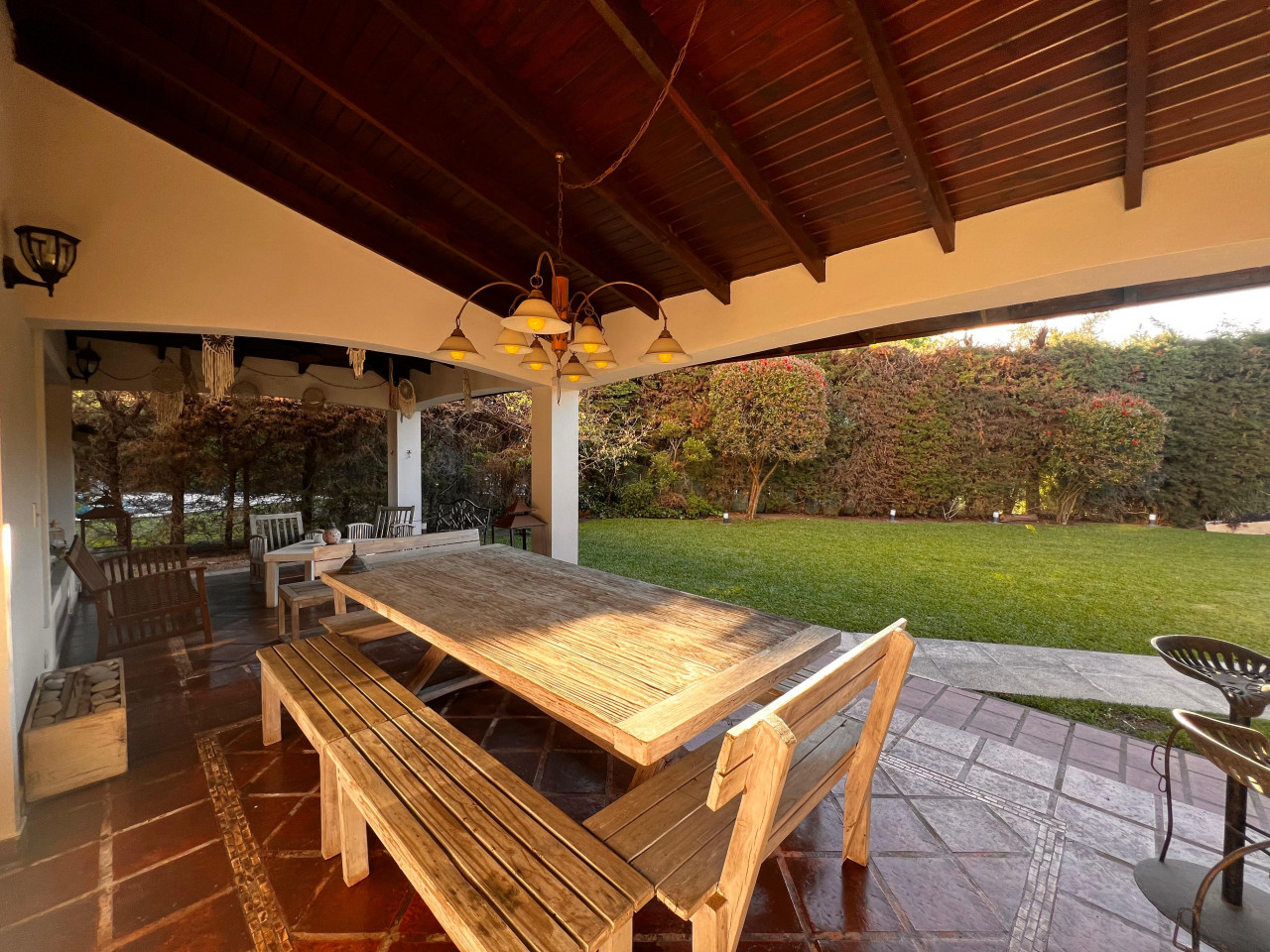 Galería cubierta con parrilla.