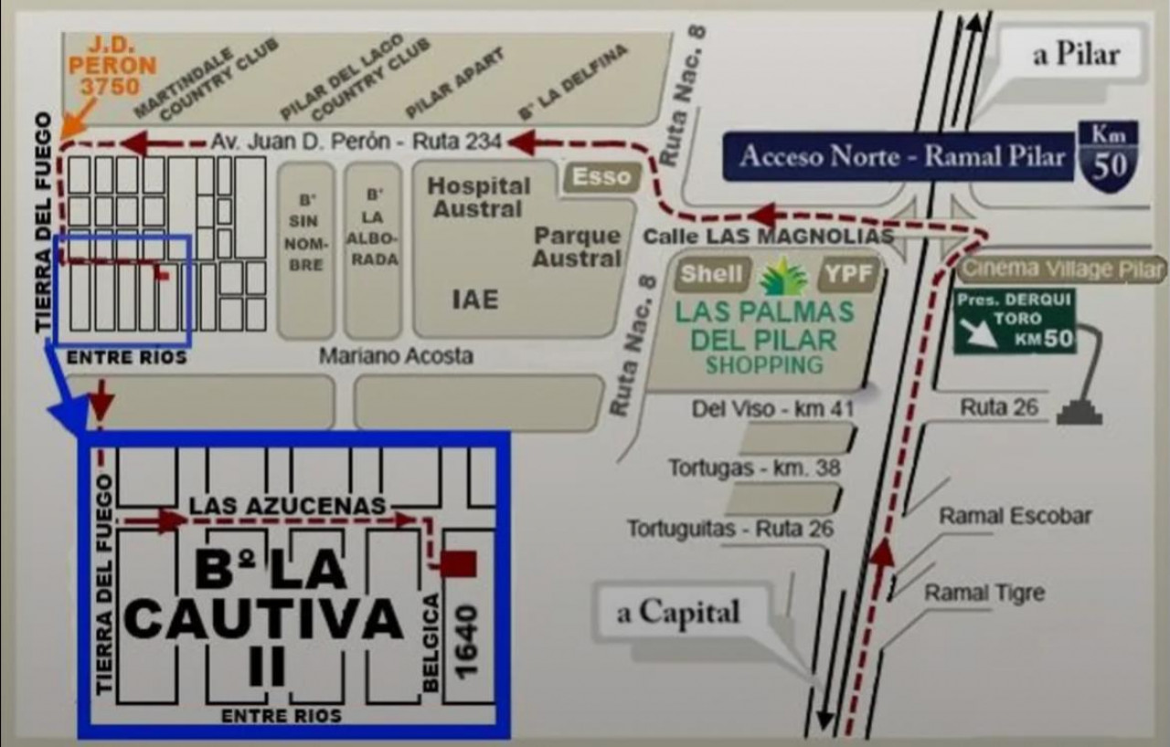 A minutos del centro comercial de Pilar, con amplia oferta gastronómica y de servicios.